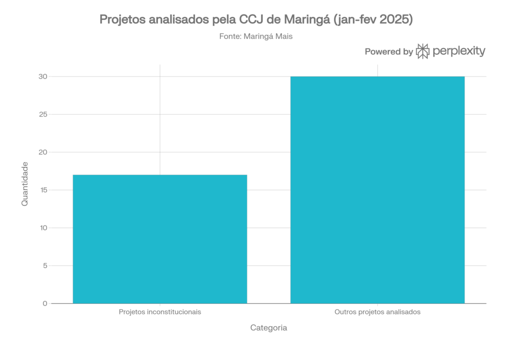 - O contexto geral de 2025 mostra uma taxa elevada de projetos inconstitucionais, o que indica um problema mais amplo de formação jurídica e responsabilidade legislativa na Câmara de Maringá.