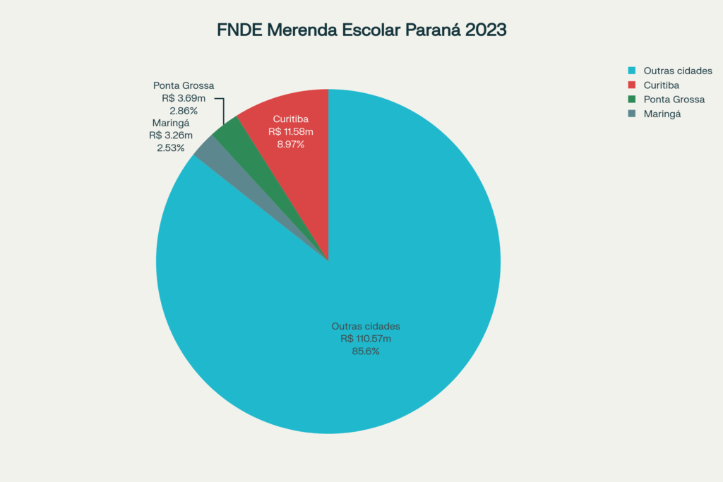Distribuição dos recursos federais para merenda escolar entre as principais cidades do Paraná em 2023