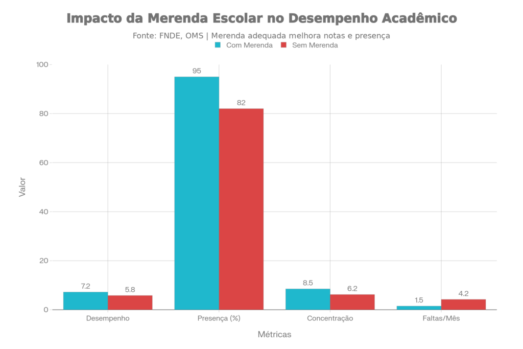 A alimentação escolar vai muito além do prato: é questão de saúde, dignidade e desenvolvimento cognitivo. Estudos do Fundo Nacional de Desenvolvimento da Educação (FNDE) e da Organização Mundial da Saúde (OMS) mostram que crianças bem alimentadas apresentam melhor desempenho escolar, menos faltas e maior capacidade de concentração.