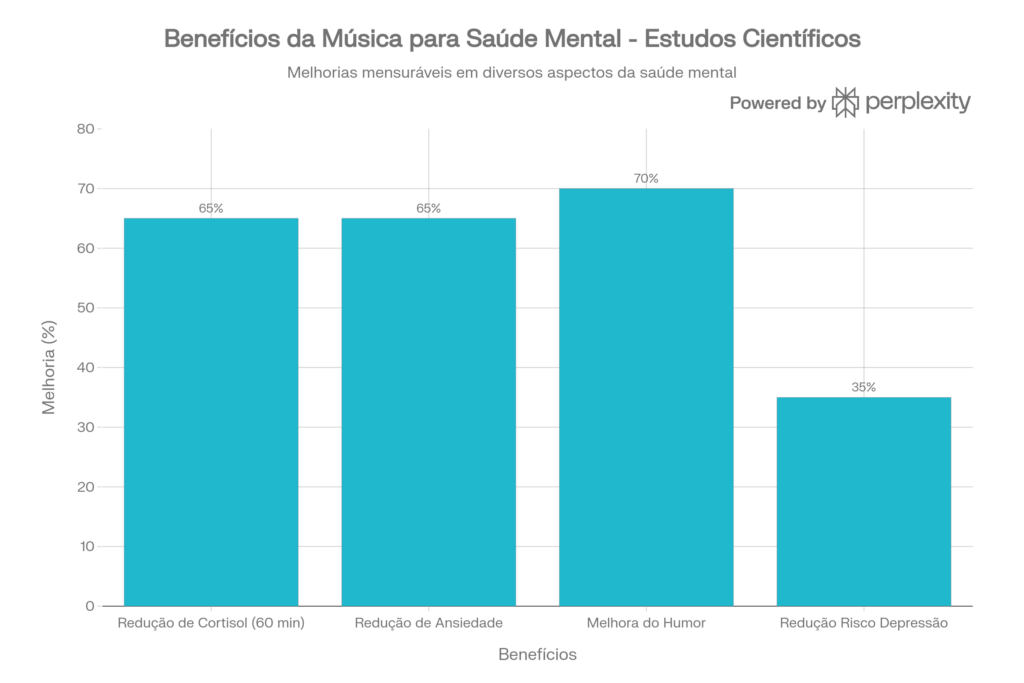 Não se trata aqui de romantismo vago. A pesquisa internacional comprova os impactos mensuráveis de políticas de democratização cultural. Um estudo do Reino Unido quantificou que participar regularmente de eventos artísticos reduz depressão, melhora a qualidade de vida, diminui a dependência de medicamentos e gera aproximadamente 8 milhões de libras por ano em benefícios sociais. A música não apenas alivia estresse—reduz cortisol, o hormônio que o provoca—, como estimula a liberação de endorfinas e fortalece conexões sociais.