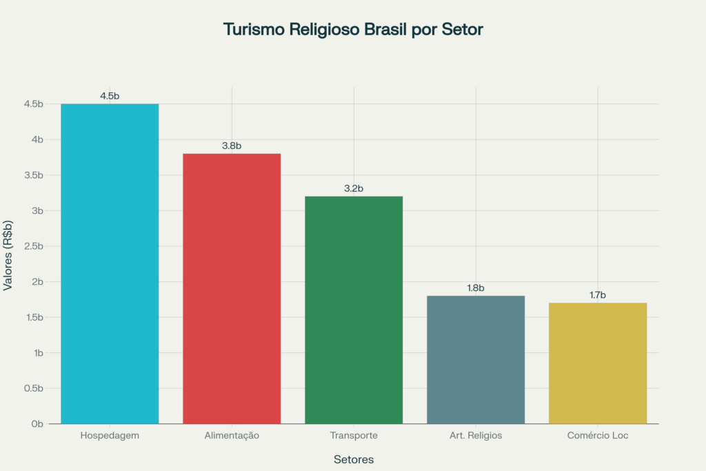 Gráfico mostra como os R$ 15 bilhões anuais do turismo religioso brasileiro se distribuem entre diferentes setores econômicos