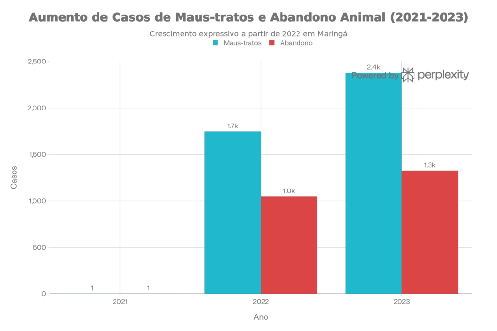 Não podemos ignorar a realidade brutal que enfrentamos: entre 2021 e 2023, a Secretaria de Proteção e Bem-Estar Animal (SEBEA) registrou impressionantes 6.496 denúncias relacionadas ao abandono e maus-tratos de animais em Maringá, sendo 4.123 casos de maus-tratos e 2.373 casos de abandono. Esses números saltaram de praticamente zero em 2021 para mais de 2.300 casos em 2023, revelando não apenas o crescimento das denúncias, mas também a criação de uma cultura de responsabilização que precisamos fortalecer.