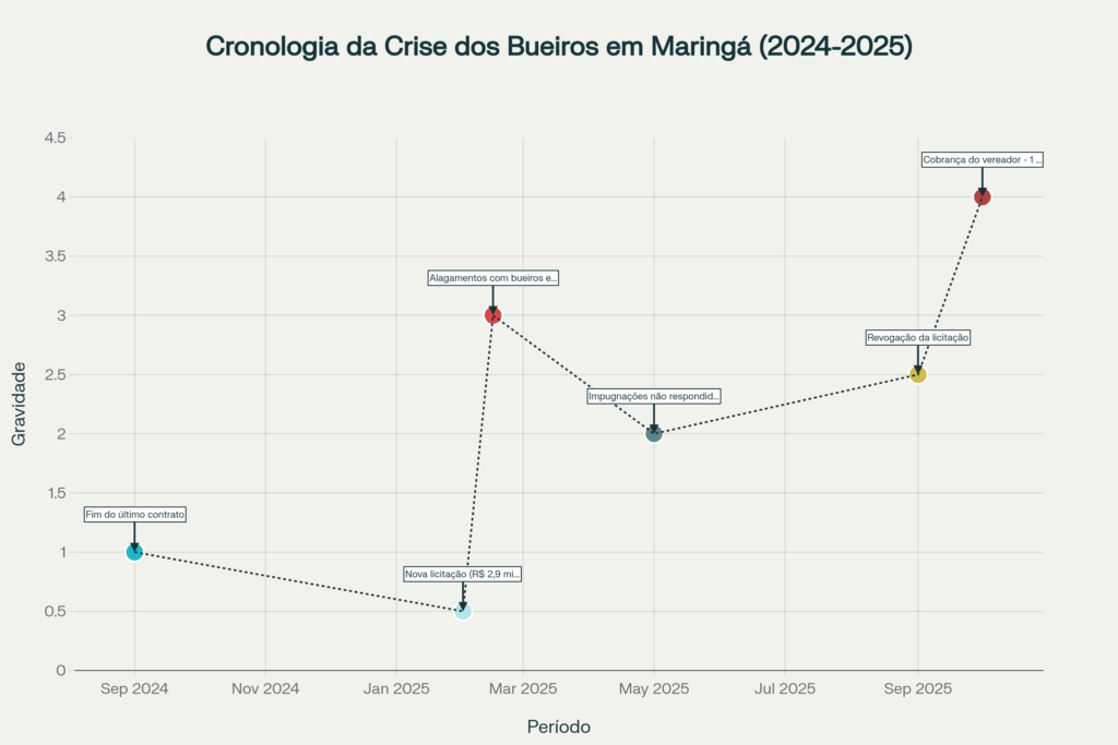 Cronologia da crise de limpeza de bueiros em Maringá entre 2024 e 2025