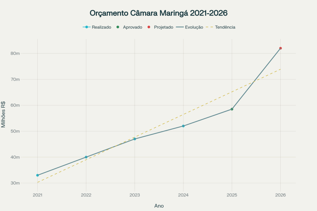 Evolução do Orçamento da Câmara Municipal de Maringá (2021-2026) – Crescimento de 149%