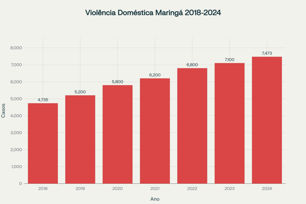 Gráfico mostra crescimento preocupante da violência doméstica em Maringá, com aumento de 57,8% entre 2018 e 2024