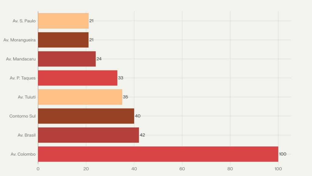 Falando em evidências, vamos aos dados concretos que justificam essa mudança. Maringá registrou mais de 1.100 acidentes de trânsito apenas em 2024, sendo que 100 deles aconteceram na Avenida Colombo. Isso representa quase 10% de todos os sinistros da cidade concentrados em uma única via.