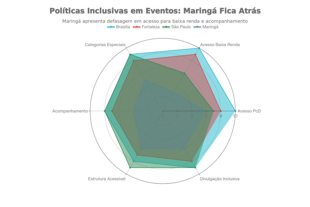 Análise comparativa de políticas de inclusão implementadas em eventos de corrida de rua, mostrando gaps em Maringá comparado a cidades de referência nacional