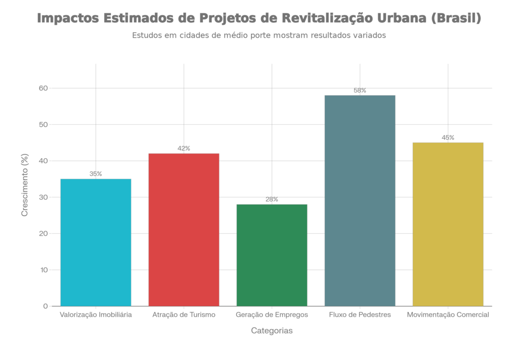 Comparação dos principais impactos econômicos e sociais gerados por projetos de revitalização de centros urbanos em cidades brasileiras de médio porte