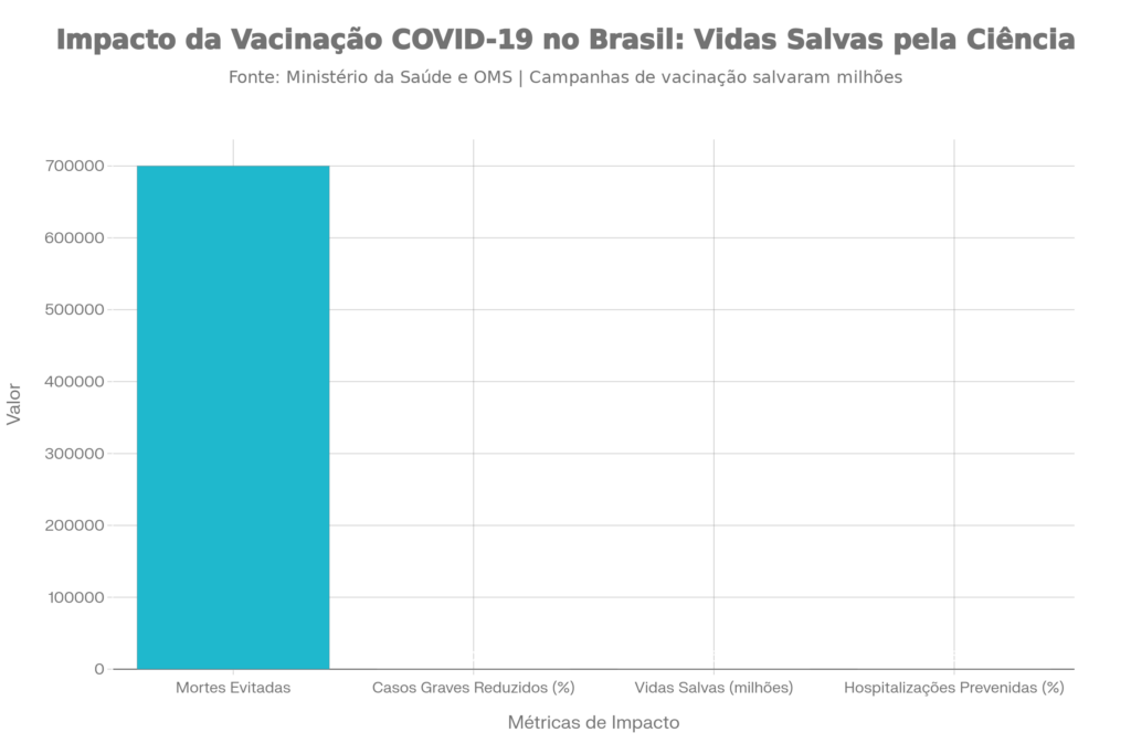Demonstração do impacto comprovado da vacinação contra COVID-19 no Brasil, evidenciando redução de mortes, hospitalizações e casos graves